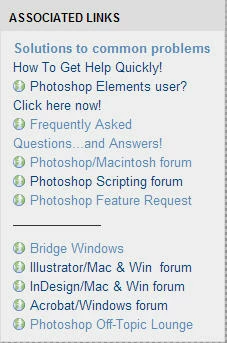 Photoshop Mac now has a list of useful forum links, only on the Overview page, but, good.