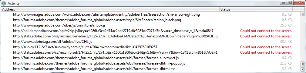 I've got an updated HOSTS file data from http://winhelp2002.mvps.org and have found that Safari 5.1.7 (current version) for Windows emits errors and won't actually allow me to follow ANY links on any adobe.com site (not the forum site, not the main site). This is not a big deal as I use IE9 for accessing this site in general, but I do occasionally test sites with Safari, and that is what led me to this accidental discovery.