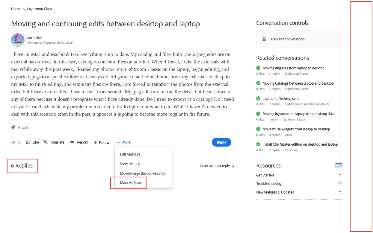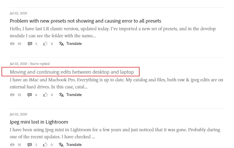 But it does show up in the LrC forum post list on page 2 right now. Agian all the replies are gone from it.