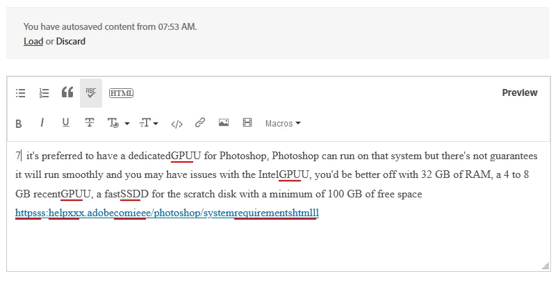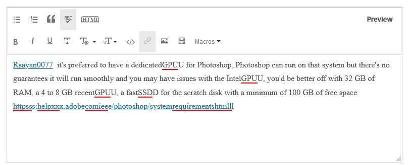 Went back to edit the post and ran spell check and this is the result, what exactly is a GPUU and a SSDD and it also removed the spacing between some words 🤣