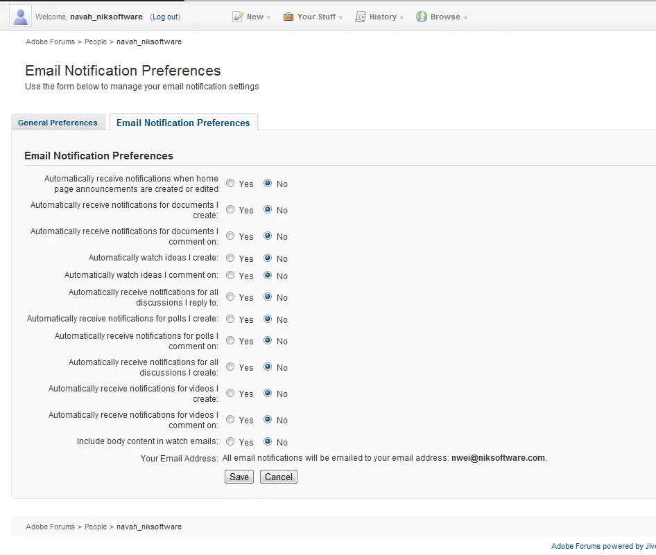 I'm still getting email notifications even though I've turned the settings off. Please help...my email address is getting tons of junk sent to it cuz the forum I posted on is so busy! Email notifications are coming from forums@adobe.com.