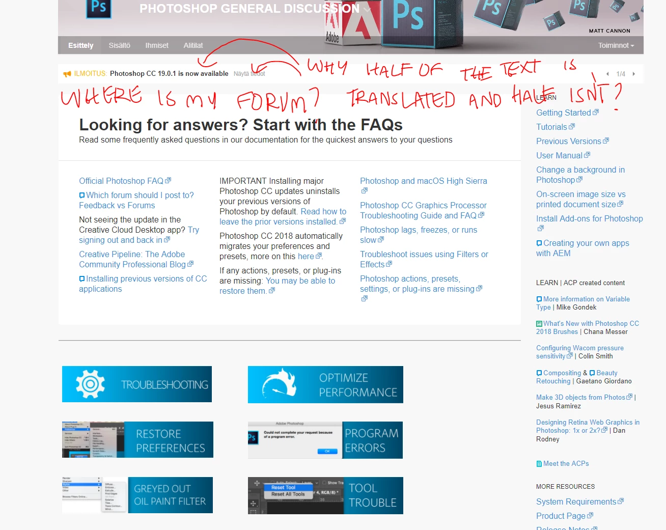 6) The reason why I got frustrated in the forums enough to find the comment section was the fact, that I wasn't able to change my language. So as you can see from the previous screenshots, half of the page is in Finnish and the rest in English. I went in my settings and found the language option, but it doesn't let me to change the language.