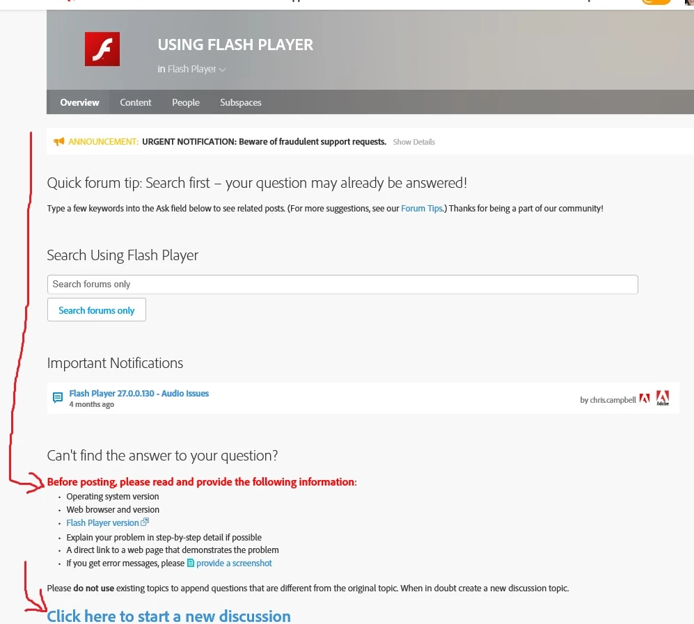 4) I had really hard time even finding how to start a new discussion (also it's a strange way to put it. The button I was first trying to find was something between "ask a new question" or "new message thread")! The tiny link after other text is on intuitive. Please make a button on top of the discussion thread to make it easy to find it. Maybe something big and blue so the eyes pop on that right away. Even better: make one button on top of the list and one under, so the person doesn't need to scroll up and down when they want to as a question.