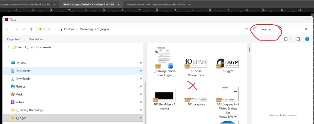 For some reason, the search bar no longer works within my folders, if I get there through the CTRL+D (place tool) through InDesign.