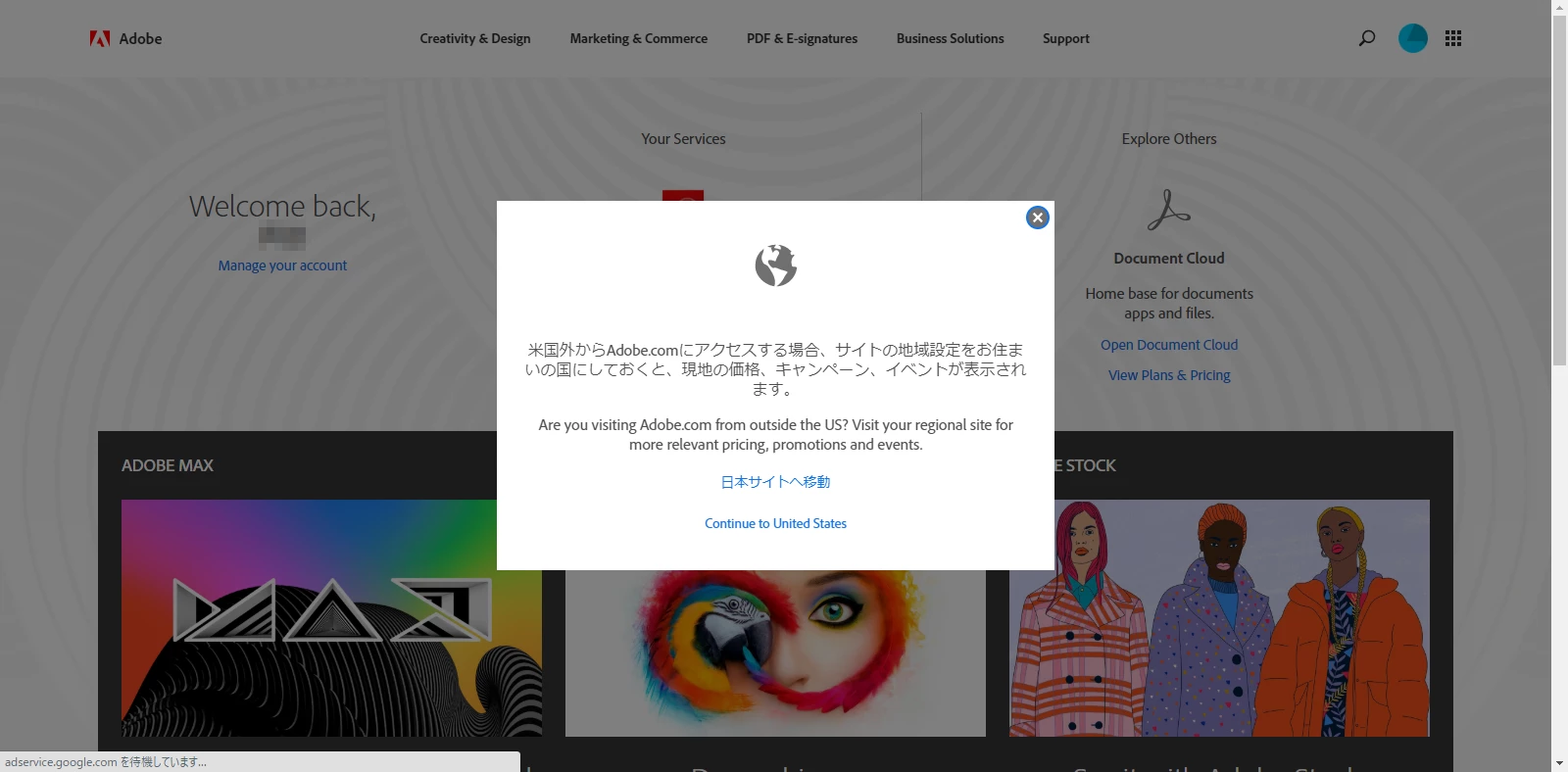 adobe.comみたいに「日本サイトへ移動」のワンクッションを挟めないのかなぁ。