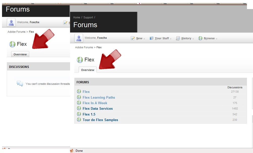 you were in the discussions section of that page which only shows the threads but there aren't any there so it gives you that wacky message. Once you clicked on the Overview tab you were taken to the full version of that page that also shows you the info boxes on that page. Usability ftw