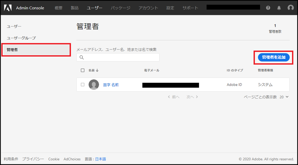 - 登録をしたメールアドレス宛てに「Adobe Admin Console の管理者権限が付与されました」というメールが送信されます。