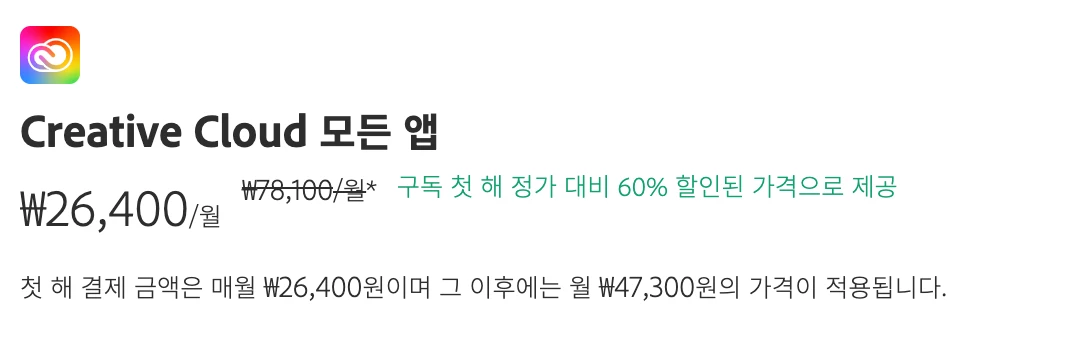 크레이티브 클라우드 월정액 결제
