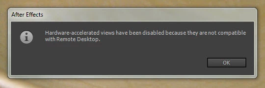 Hardware accelerated views have been disabled because they are not compatible with remote desktop