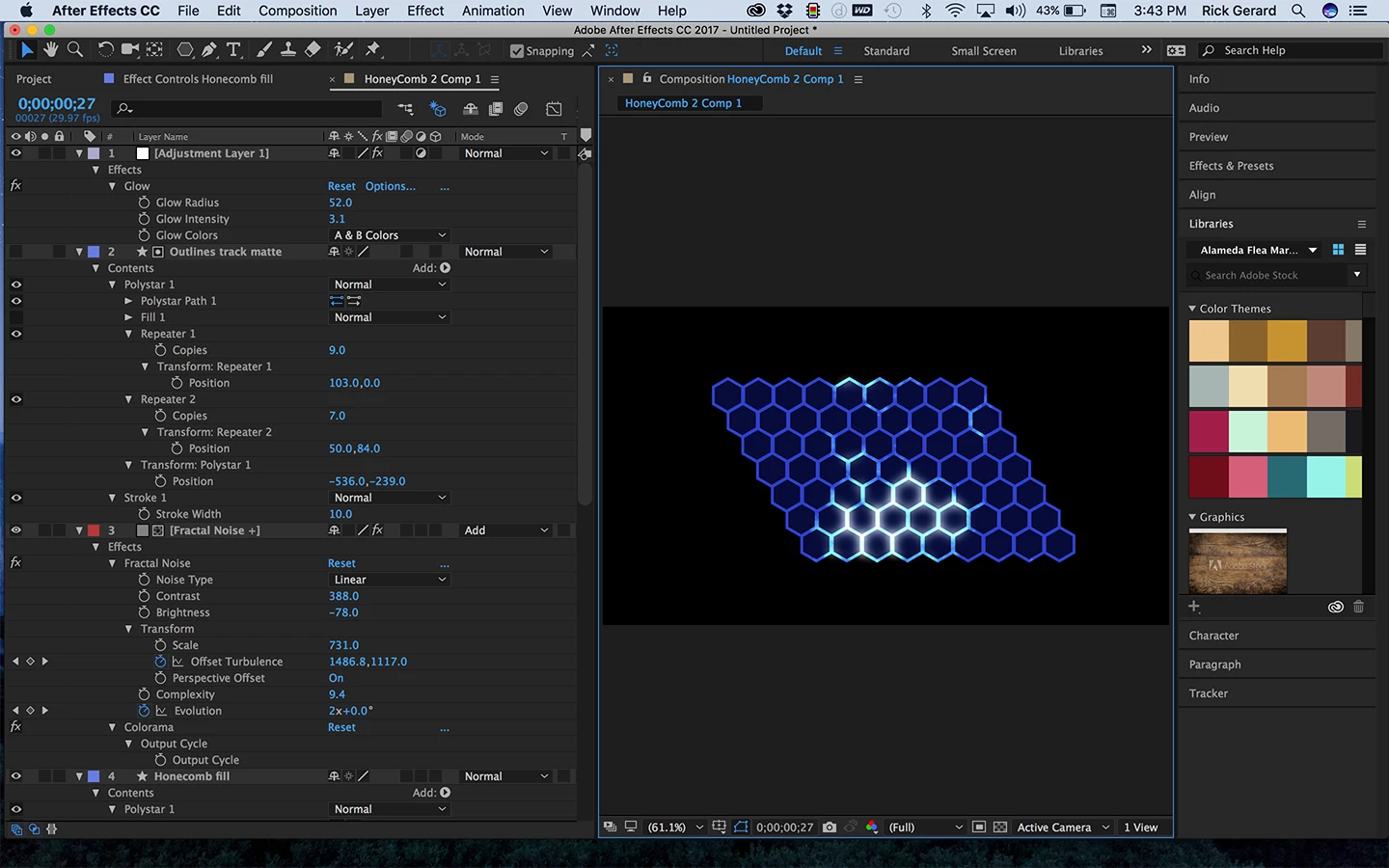 You can use any kind of animated shapes to bring out the highlights, I just thought fractal noise would easily give me something to start with. Just for fun, here's the project file: Dropbox - honeycomb fractal.aep (note: your browser may add a .txt extension to the .aep file. Just delete it and it should open just fine.
