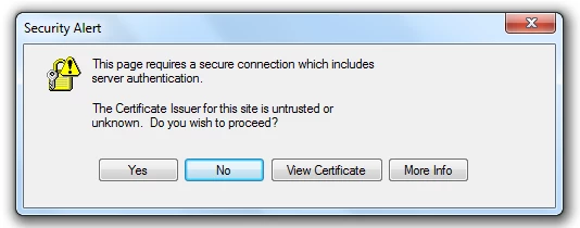 In the meanwhile, one workaround that you could use is to install the untrusted or unknown certificate in your Trusted Root Certificate Authorities. You can install the certificate from Internet Explorer while accessing the same resource.
