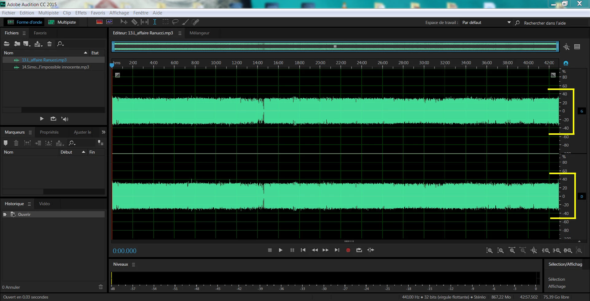 So I would like to know how to do with "Adobe edition cc" to harmonize a show by going up the set to the same level that is to say, to make the track is at the same level as the intro recovery, with Adobe Audition CC taking as "template" an episode of the show whose sound has been recorded correctly (See screenshot 3).