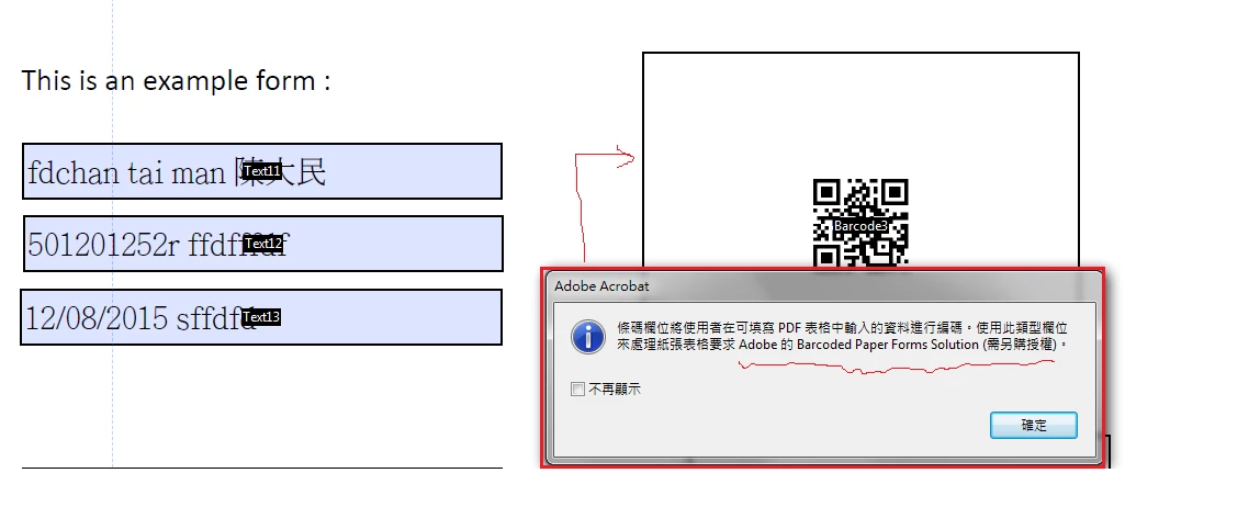 display following notification (need Adode barcoded paper forms resolution license) when I add a barcode on pdf form !