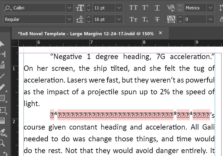 Just a month ago I used InDesign to format my novel for print. I was able to copy/paste directly from Scrivener into my InDesign template without any issues. I'm working on a new novel and wanted to check how InDesign would render some of the stranger characters I planned on using in this draft when I found a larger issue.