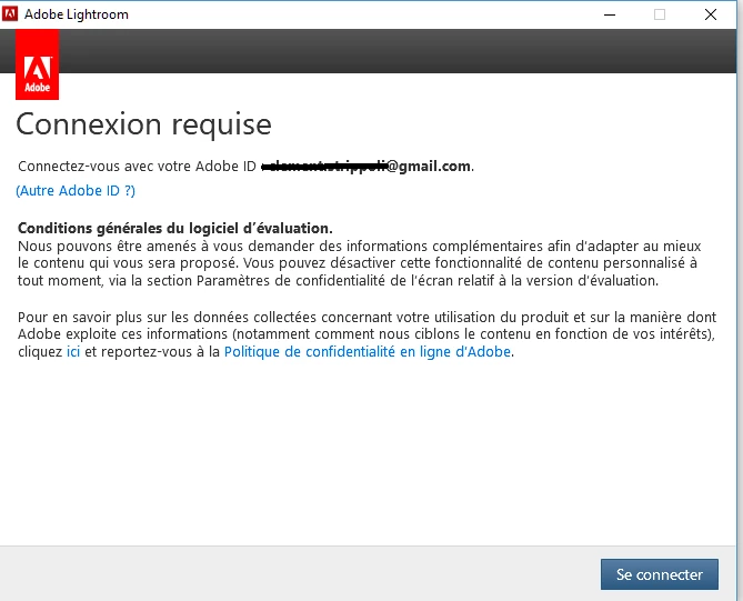 I confirm that the email address that I've hidden is the one that is associated with the Adobe account that has the photography plan activated.