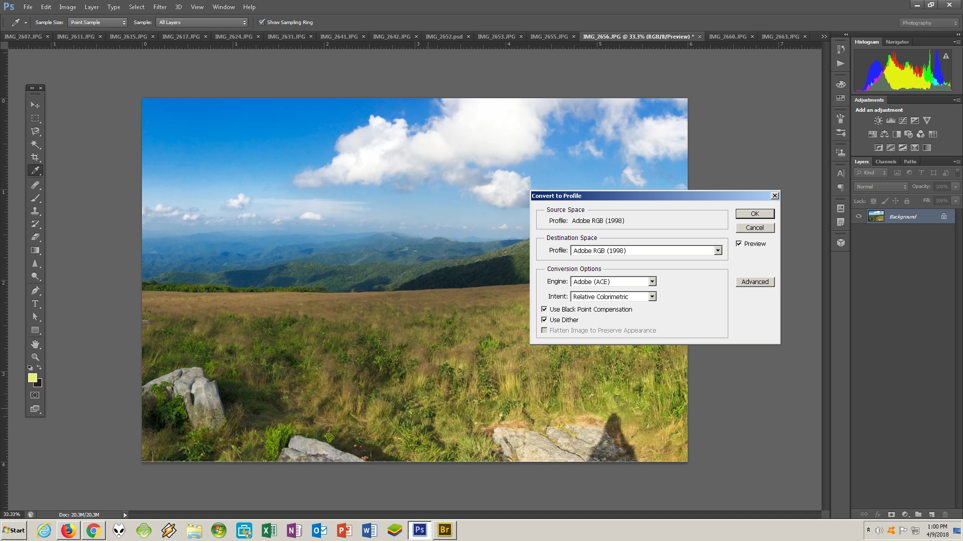 converted to profile, (I read in places to be sure to do this step. Before it said srgb in the print settings. Now that I converted it says adobe rgb 1998 in the print settings).