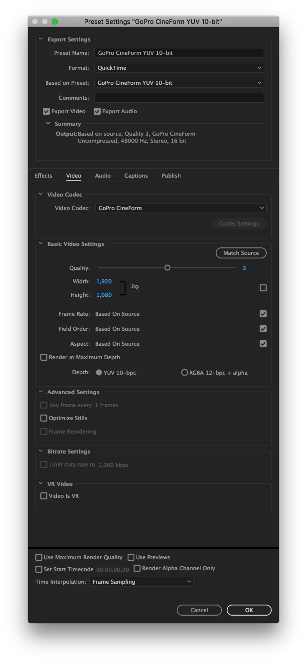 - Preset settings I used to convert the footage.