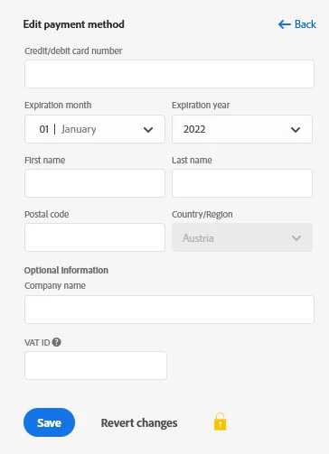I want to change the adress for billing but there is no field to enter a new adress or change the old one!