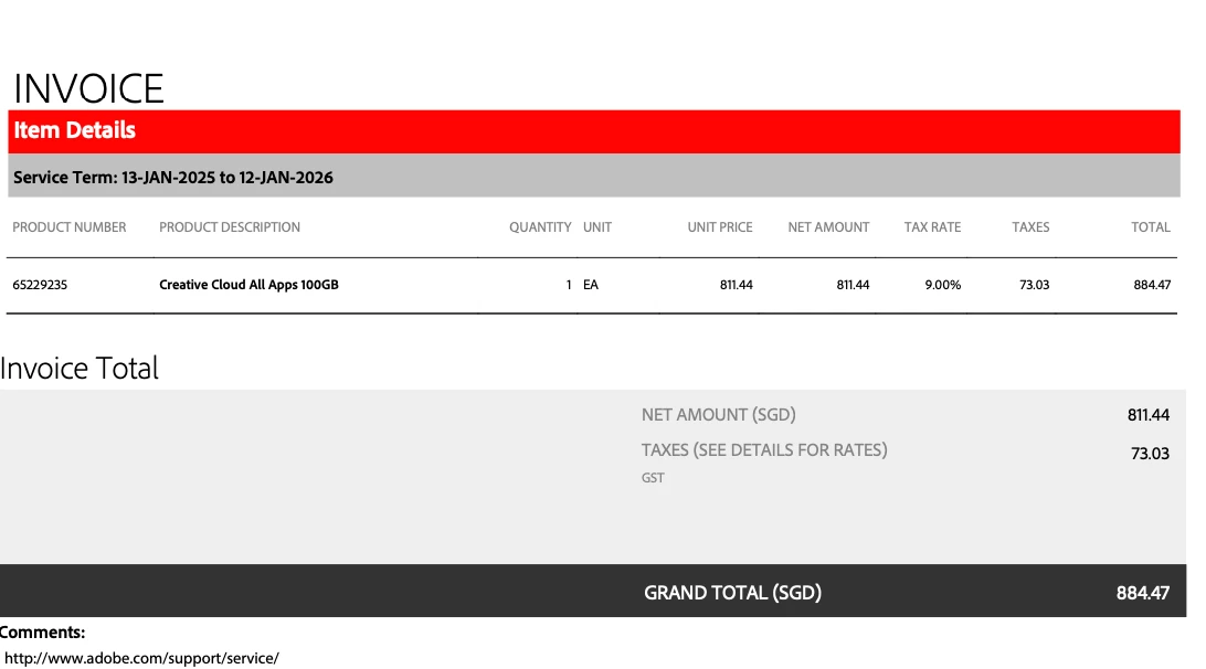 According to the invoice for my annual payment plan (Jan 2025–Jan 2026), my fee is $884.47 after 9% taxes. However, my debit card was charged $909.24, which is an additional $24.77. I'm trying to understand what this extra charge is, and why it isn't reflected in the invoice?