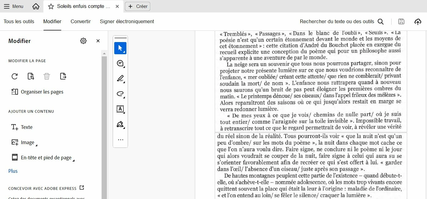 So I have this result in the created blank page (it is like a collage between two parts of text) :