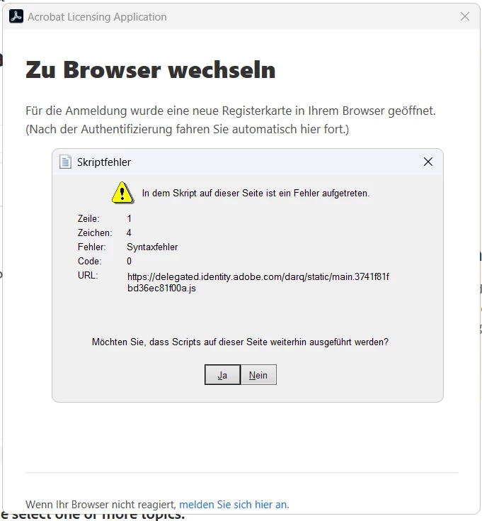 Acrobat 2020: Activation error (Script error)