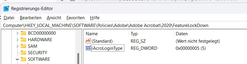 I've tried the Registry fix by adding "iAcroLoginType: 5", but the problem's still the same.
