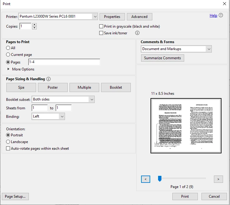 I am trying to print 2 pages per page. I am currently ignoring pages i - viii and trying to print pages 1-4. These are the pages I am dealing with.