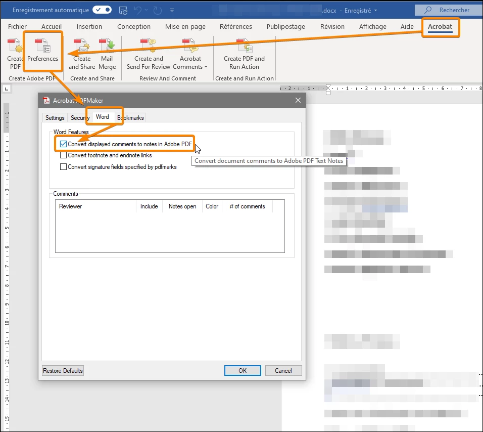 Acrobat DC automatically converting track changes in Word to Accept Changes