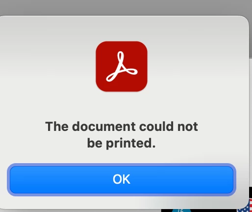 I haven't been able to print from acrobat pro - i get these error boxes: