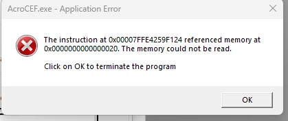 I have referenced the Acrobat KB articles such as: Resolve Acrobat intermittent crashes on Windows (adobe.com) (Nothing worked)