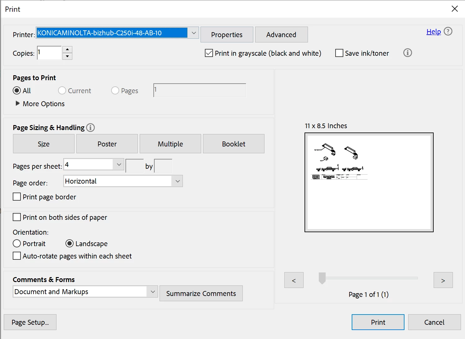 Adobe Acrobat isn't printing Multiple pages on one sheet