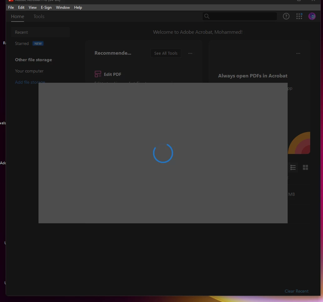 If I click on the account or apps button, the app gives me this screen, and it does not disappear until I restart from the task manager.