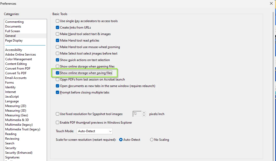Check the "Show online storage when saving files" option - if there is a check mark clear it - then click OK at the bottom of the page