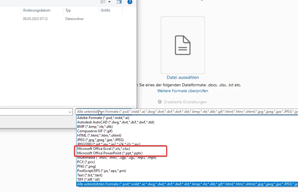 I have the problem that I can't open Word files in Adobe Acrobat or convert them to pdf on one device.