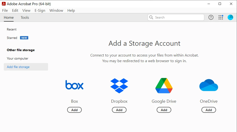 Adobe cloud storage access in Acrobat Pro