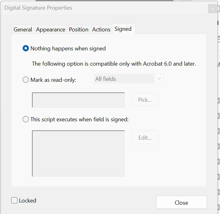 See attched where you could specify "NOTHING HAPPENS WHEN SIGNED" then you "PICK" those check boxes or fillable spaces.
