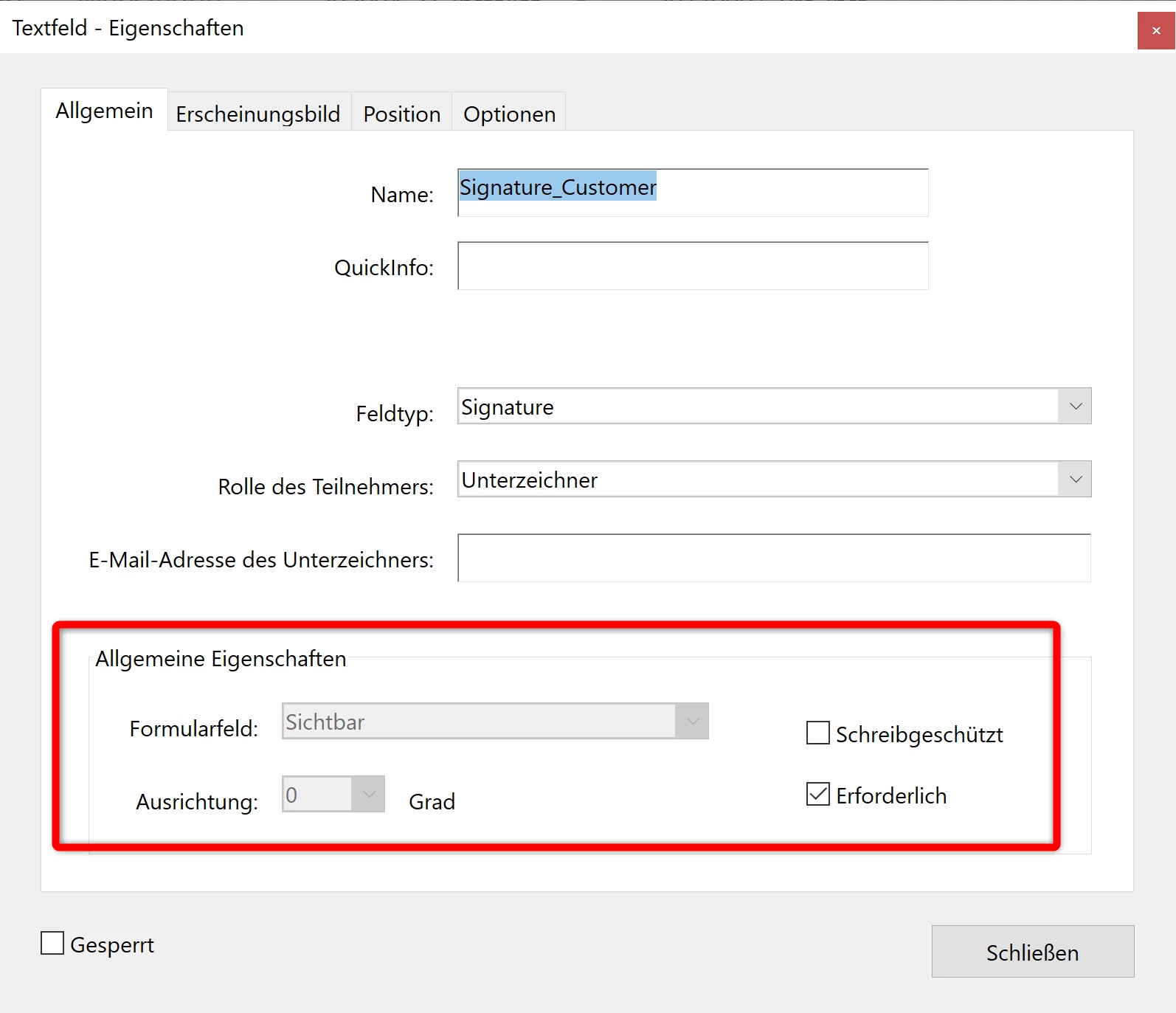 Adobe PDF formular: Common field properties greyed out for all fields?!