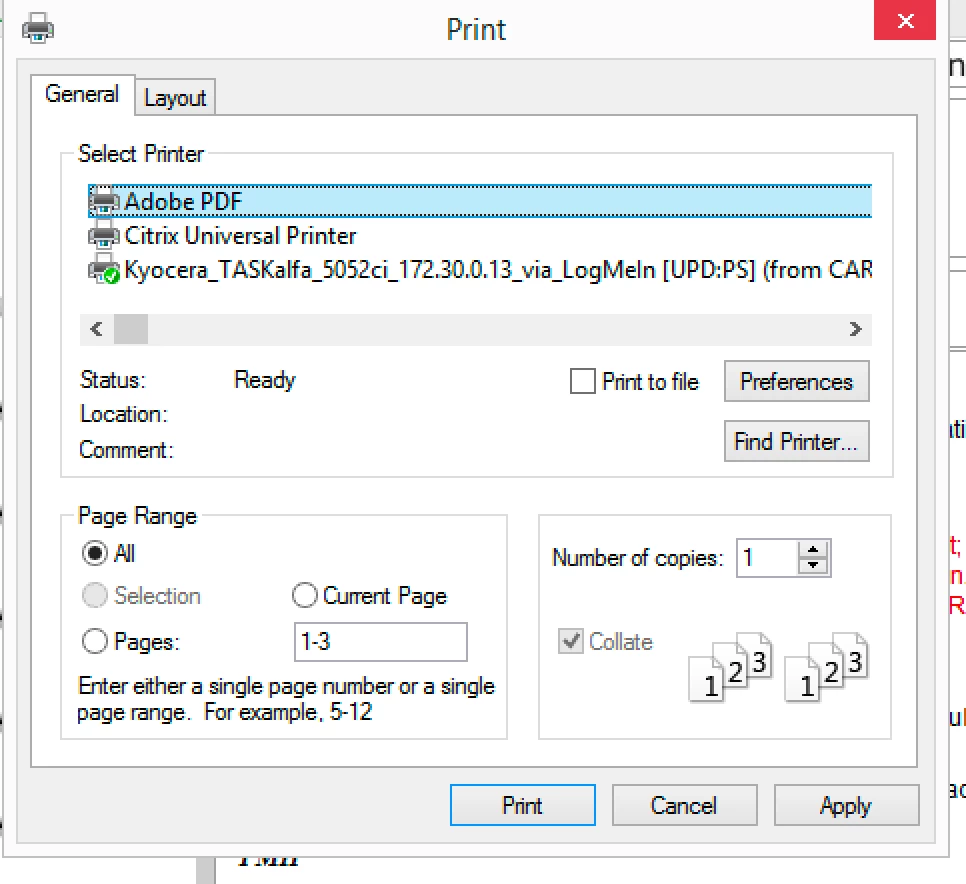 Situation: User is using Citrix to remote into Docutap EMR system. User is able to see Adobe PDF Print option. But when she selects print, she encounters the error: Cannot use this product under a guest account