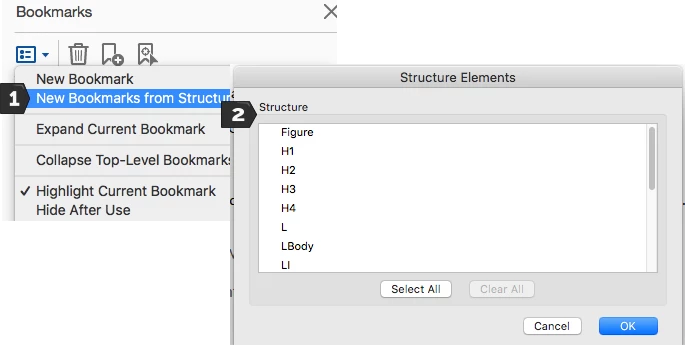 What I'm looking for is the functionality that used to be displayed when you were configuring Acrobat as to which ToC levels to include in your PDF. There was a bunch of other controls that used to appear as well, all of which don't seem to be present in the version I now have.
