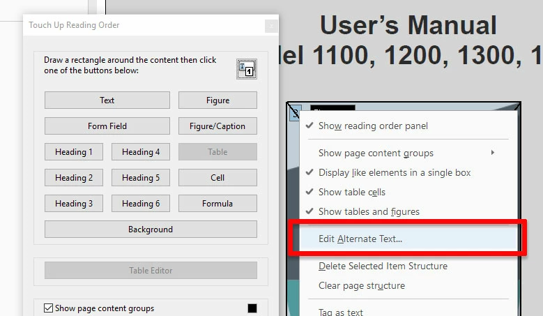 OK - so alt text isn't sticking when using the action. Maybe try to add some manually, saving, simply to see if it's the action that's not behaving well, or the file itself.