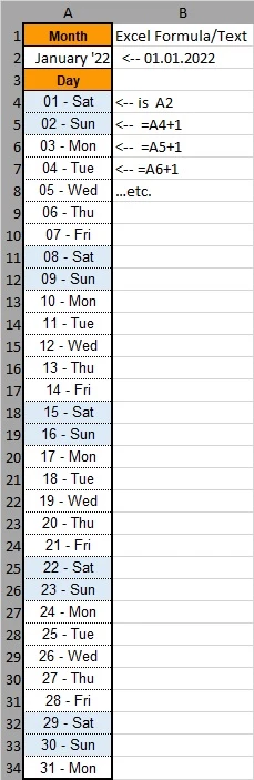 how can I create a calendar with TextBoxes so that the underlying text field always adds a day. Since I am unsure how and whether I can formulate it correctly, I have included the picture.