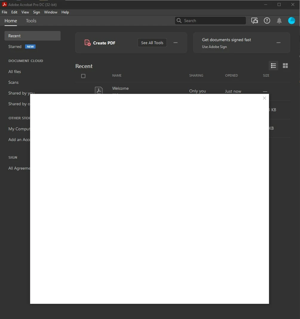Blank Pop-up screen after launching Acrobat Pro DC