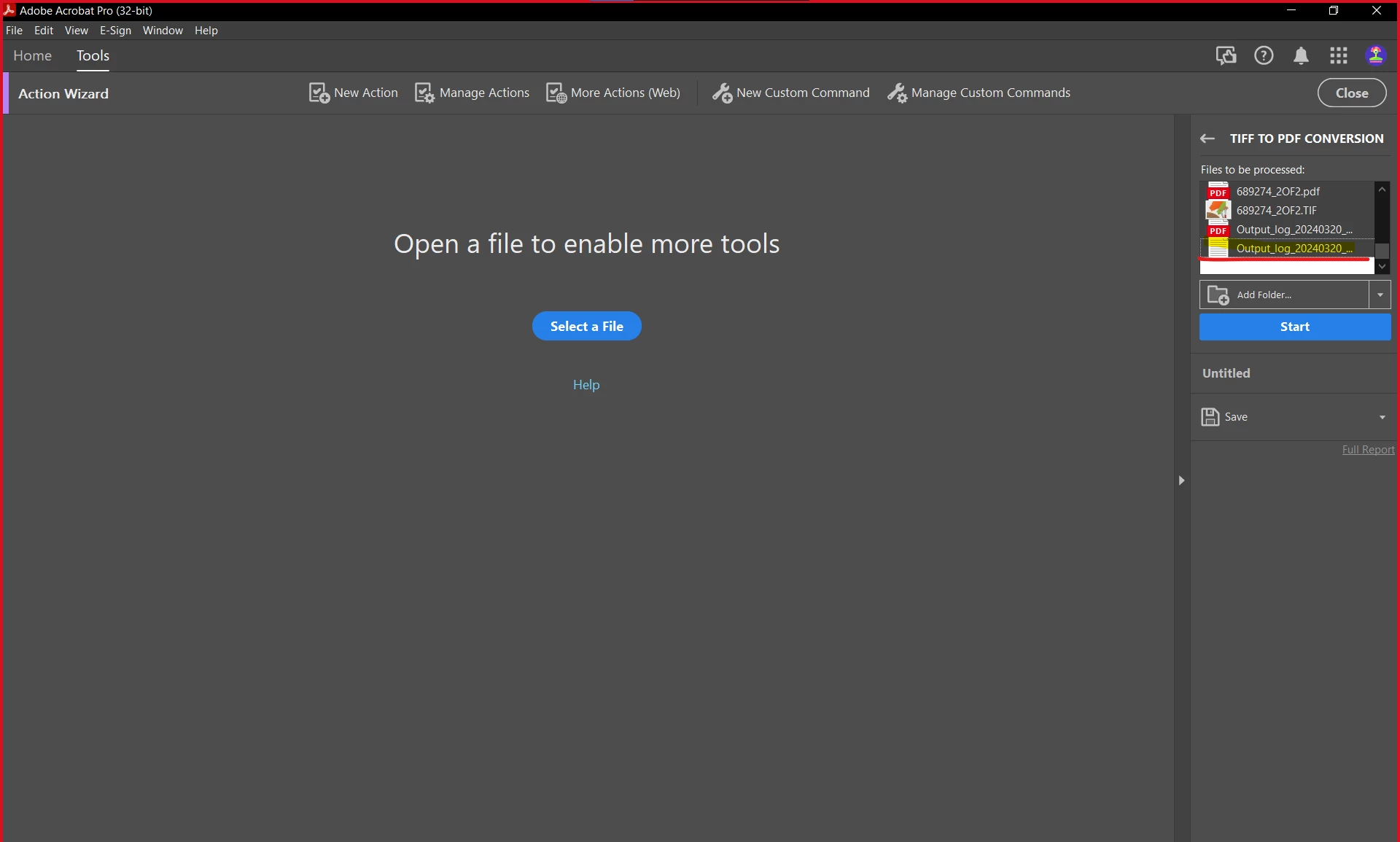Hello, I have a requirement where I need to convert TIFF ---> PDF/A and  PDF ---> PDF/A files. I have created a action from the action wizard that open files from the parent folder from  my laptop and save the files into PDF/A format files. But the Folder that I am selecting for the parent folder is including other files for conversion along with tiff and pdf files, for instance text file and JPEG files. Is there any way I can filter the file selection from my parent folder to only choose TIFF files and PDF files for conversion?