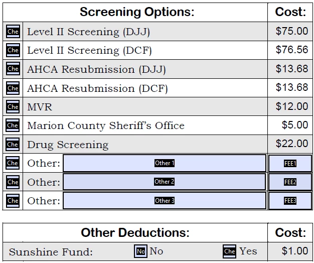 I need to calulate the total of all fees associated with the boxes checked:
