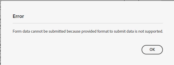 If we use Adobe Chrome Extension, We can't submit data. We are getting en error called "Form data cannot be submitted because provided format to submit data is not supported."