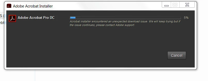[Moderator: No need to disable antivirus] Download the offline installer and install: Adobe - Adobe Acrobat Reader DC Distribution