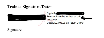Certificate Signature Not Showing Reason for Signature