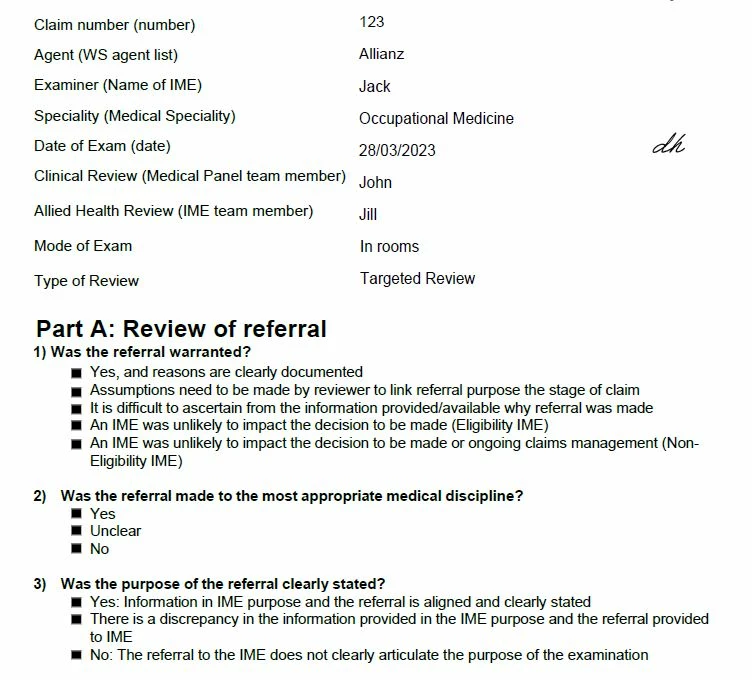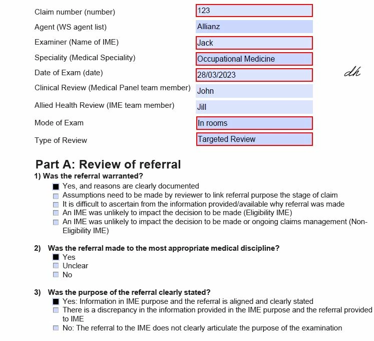 But after I initial and 'lock' the form, the second picture shows all the checkbox selections as 'blacked out' (so there is no easy way to identify what selections were made unless I export the form to CSV format - i.e no clear way to show the 'yes' selections). The other form responses in the other field types are shown.