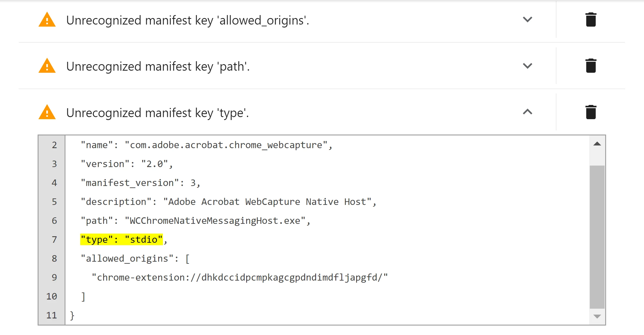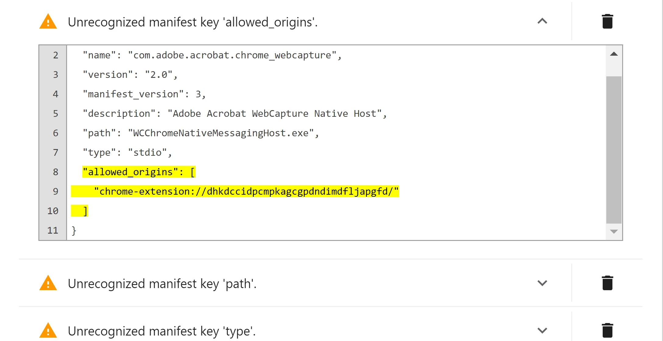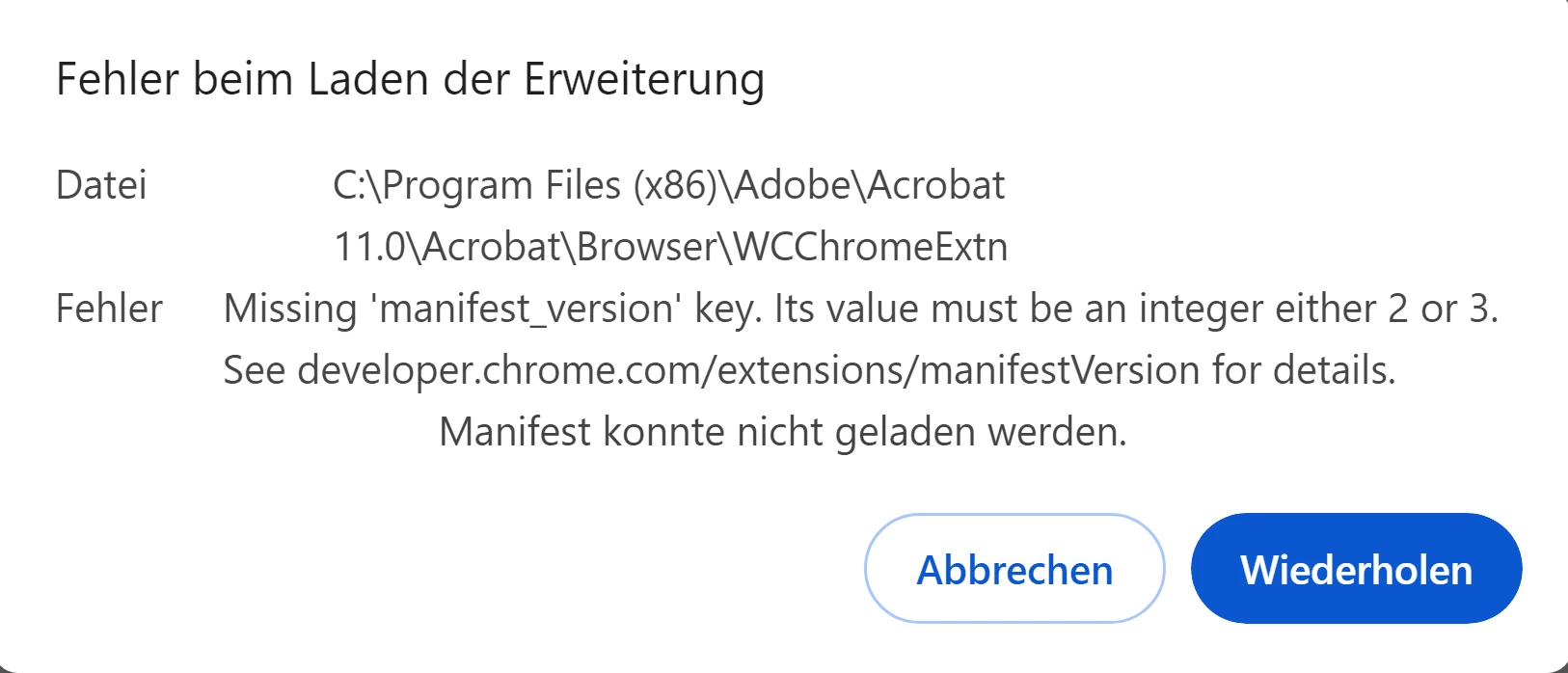 Chrome Browser extension (Acrobat WebCapture): “Missing 'manifest_version' key”