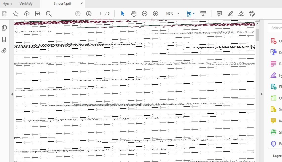 combine pdf = outputs a binder file with just black nois but no errors